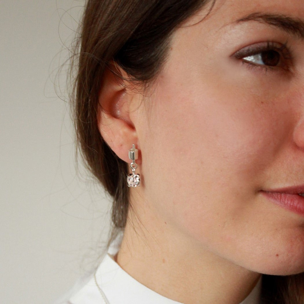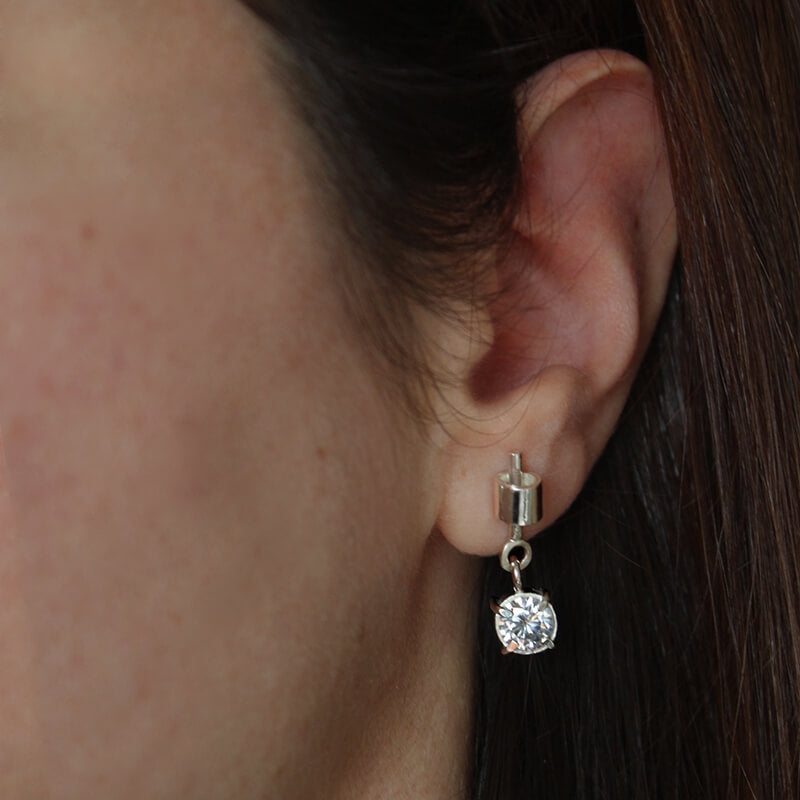 Una pieza exclusiva. Dos zirconitas engastadas llenas de movimiento. Un diseño arquitectónico y minimalista que combina la pureza de la plata con el brillo cautivador de la Zirconita. Sutiles pero impactantes, son la elección perfecta para quienes buscan una joya atemporal que eleve cualquier look