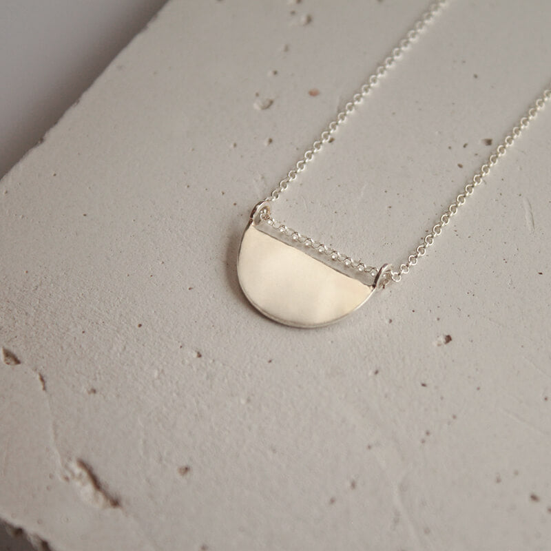 Hecho a mano en Plata maciza de ley (925) en nuestro taller en Barcelona. Firma de Diana Parés 925 con sello de golpe en el reverso del colgante.