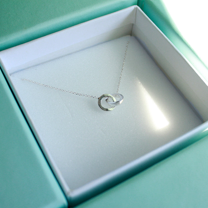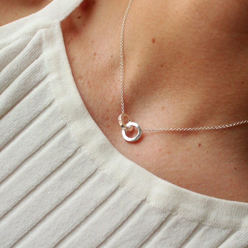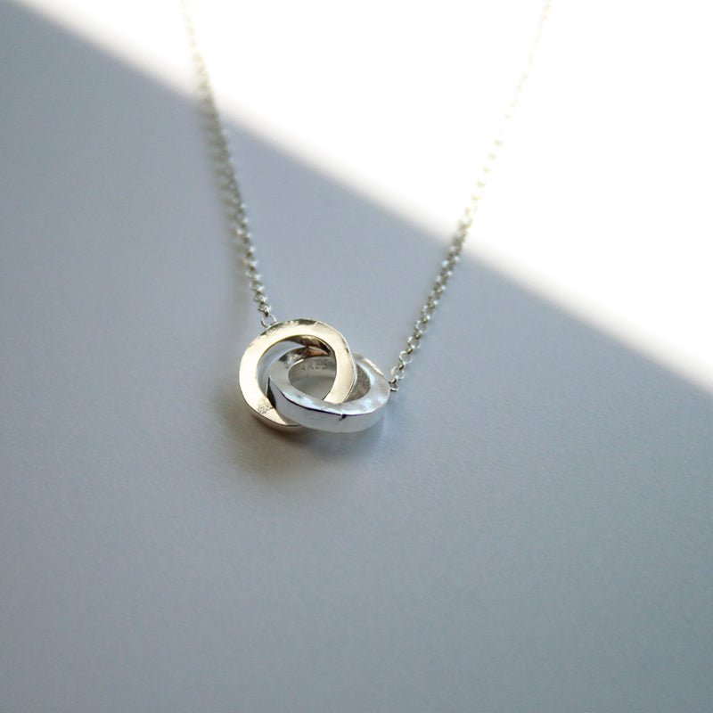 Círculos irregulares entrelazados que simbolizan la perfección de lo imperfecto en las formas. Delicado y sobrio, es ideal para las amantes del minimalismo.