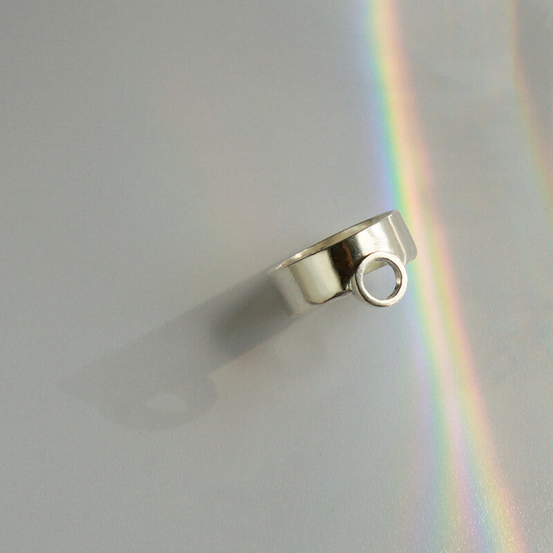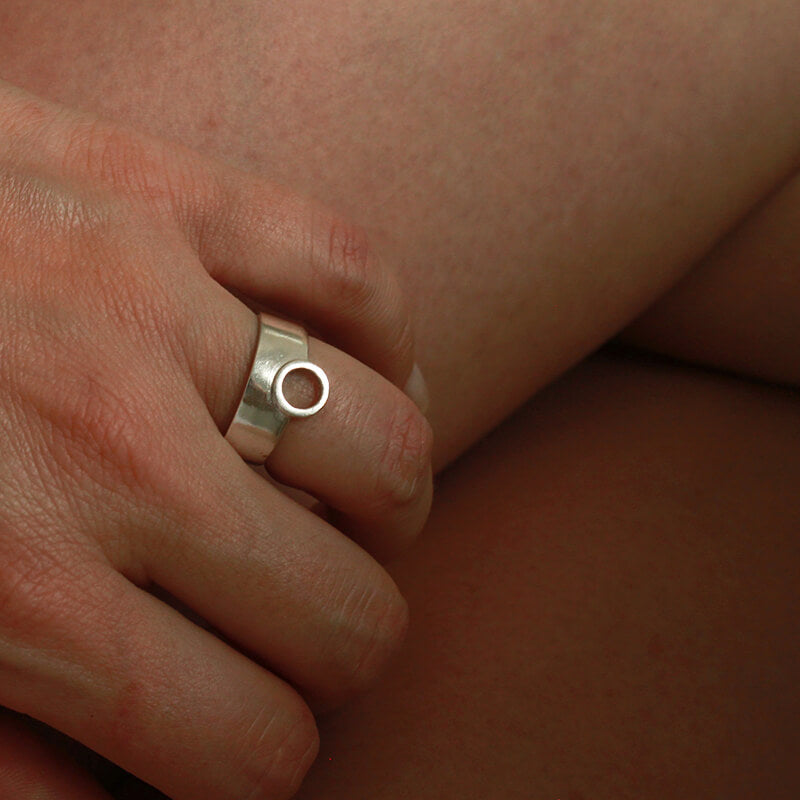 Hecho en Plata maciza de ley 925 por fundición, pulido y terminado a mano en nuestro taller en Barcelona. Logo de Diana Parés y sello de golpe 925 grabado en la parte interna del anillo.