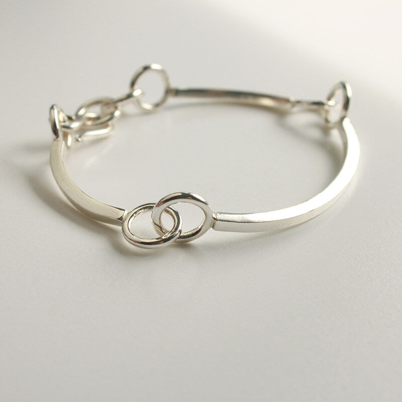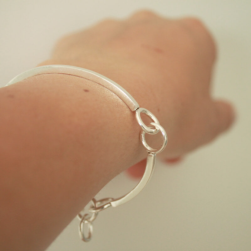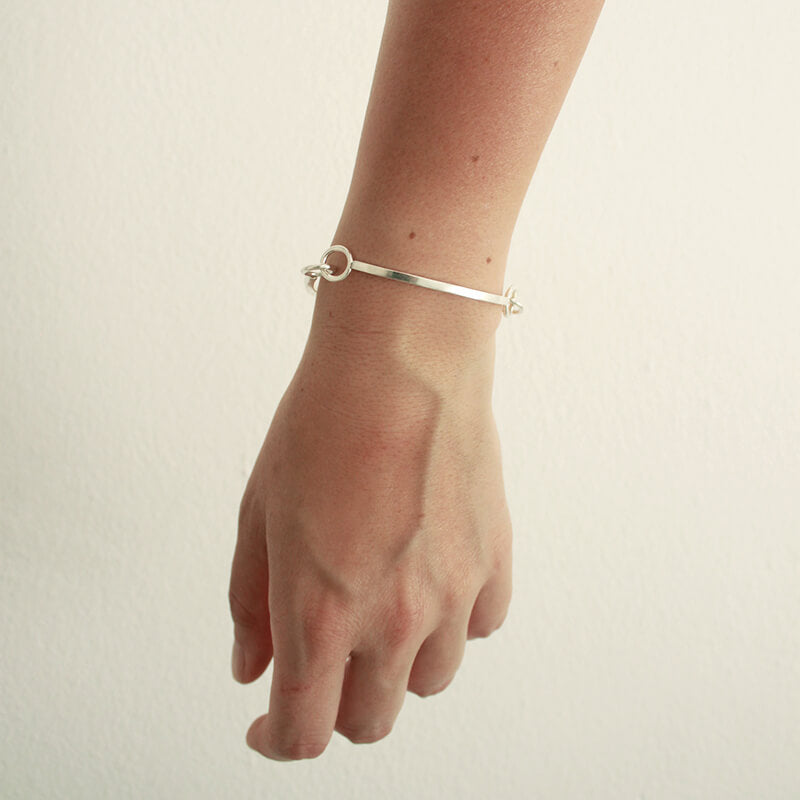 Hecho en Plata de ley maciza (925) en nuestro taller en Barcelona. Firma de Diana Parés 925 grabado con sello de golpe en la parte interna del brazalete.